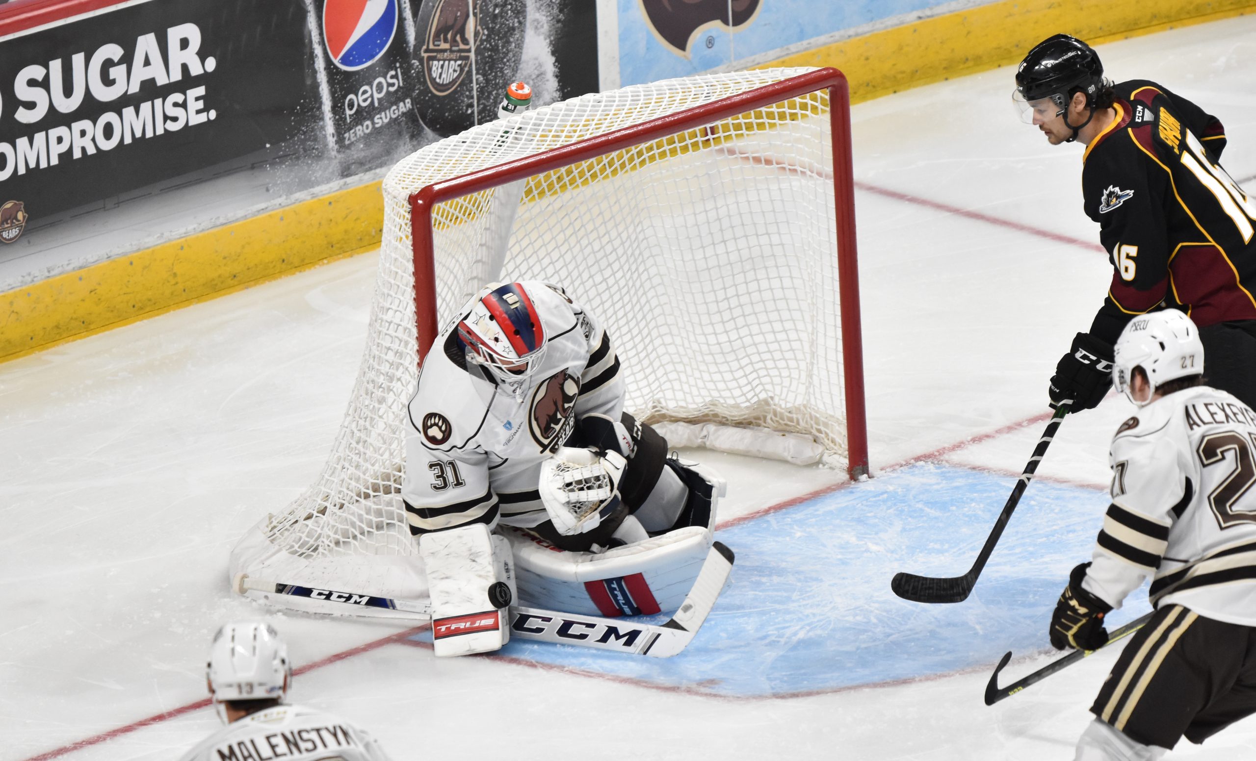 Cleveland’s Josh Dunne scored the first period’s only goal at the 7:55 mark after winning a net front battle on the man-advantage. Shots after 20 minutes were 14-7 Monsters. The Bears responded in the next frame with two goals separated by only 105 seconds. First, Mike Sgarbossa finished a slick passing play with Axel Jonsson-Fjallby at 5:25, followed by a Garrett Pilon redirect of a Lucas Johansen shot at 7:10.