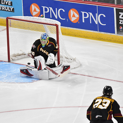 Liam Foudy provided Cleveland a 3-2 advantage only 22 seconds into the third period, but Cody Franson answered with his second goal in as many nights at 12:12. On the power play, Franson blasted home a point shot with net front traffic. Hershey’s special teams finished 1-for-3 on the man-advantage and 4-for-5 on the penalty kill.