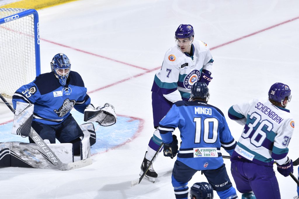 Orlando answered back at 13:16 when Mathieu Foget slipped a pass to Trevor Olson on the back door and the rookie forward banged it home for his eighth of the year. The Icemen again cut the margin to two goals when Everett Clark netted his seventh of the season on a backhander that ramped up Ouellette’s stickblade and in to make it 5-3 with 4:04 to go in regulation.
