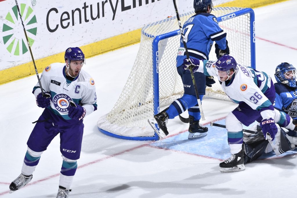 Jacksonville head coach Jason Christie pulled goalie Tanner Jaillet, who had replaced Appleby (19 saves) at the start of the third, with a little over three minutes left. The Solar Bears took a number of shots at the empty net but failed to score. Finally, Schoenborn put the game away at 18:39 when he took a pass from newly signed Jackson Playfair and tucked a shot inside the goal post for his sixth of the season. For Playfair, the son of former NHL player and coach Jim Playfair and nephew of former NHLer Larry Playfair, it was his first professional assist coming in his very first pro game.