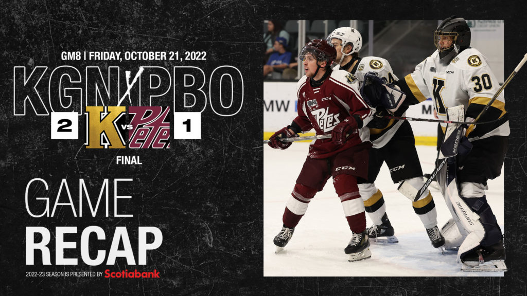 Peterborough came out strong outshooting the Fronts 12-6 in the first period taking the first lead before Kingston reversed the play in their favour with a 13-8 shot advantage in the middle 20 minutes tying the game on a powerplay goal. Kingston allowed Petes shooters only a pair of last-minute shots in the last 11 minutes of the second.