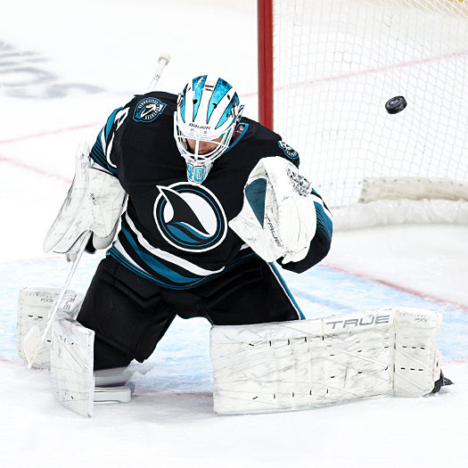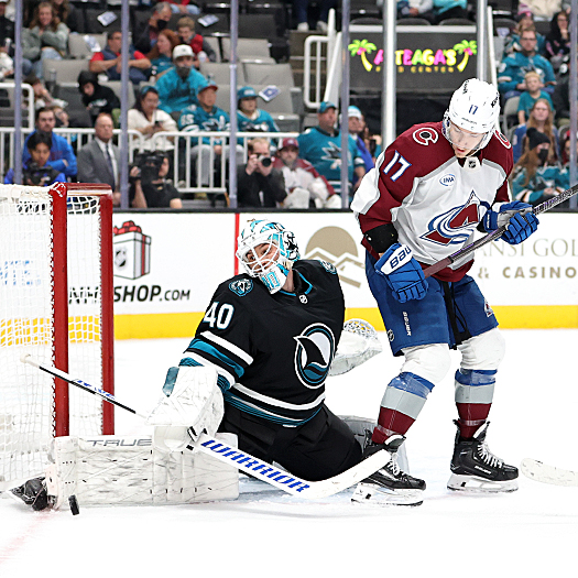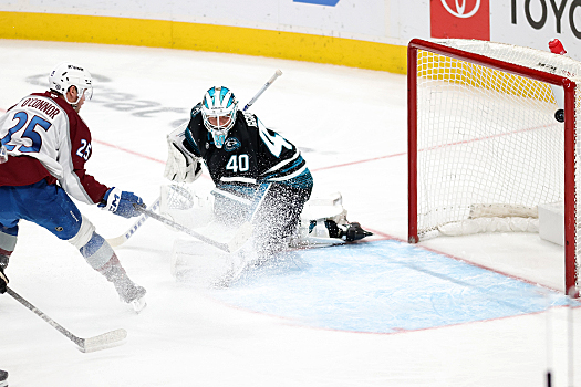 Alexandar Georgiev, sent from Colorado to San Jose in the trade along with Nikolai Kovalenko, a conditional fifth-round pick in the 2025 NHL Draft and a second-round pick in the 2026 NHL Draft, started for the Sharks and made 27 saves.