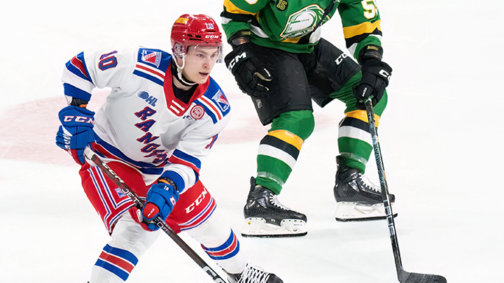 London, Ont. – The London Knights utilized three power-play goals to earn a 5-1 victory in game one of a best-of-seven series in the second round of the OHL Playoffs Thursday night. Francesco Arcuri (Dallas Stars) scored the lone goal for the Rangers and Marco Costantini made 27 saves on 32 shots.