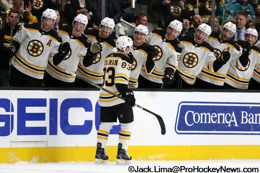 Karson Kuhlman (83) celebrates his first NHL goal – Photo by Jack Lima