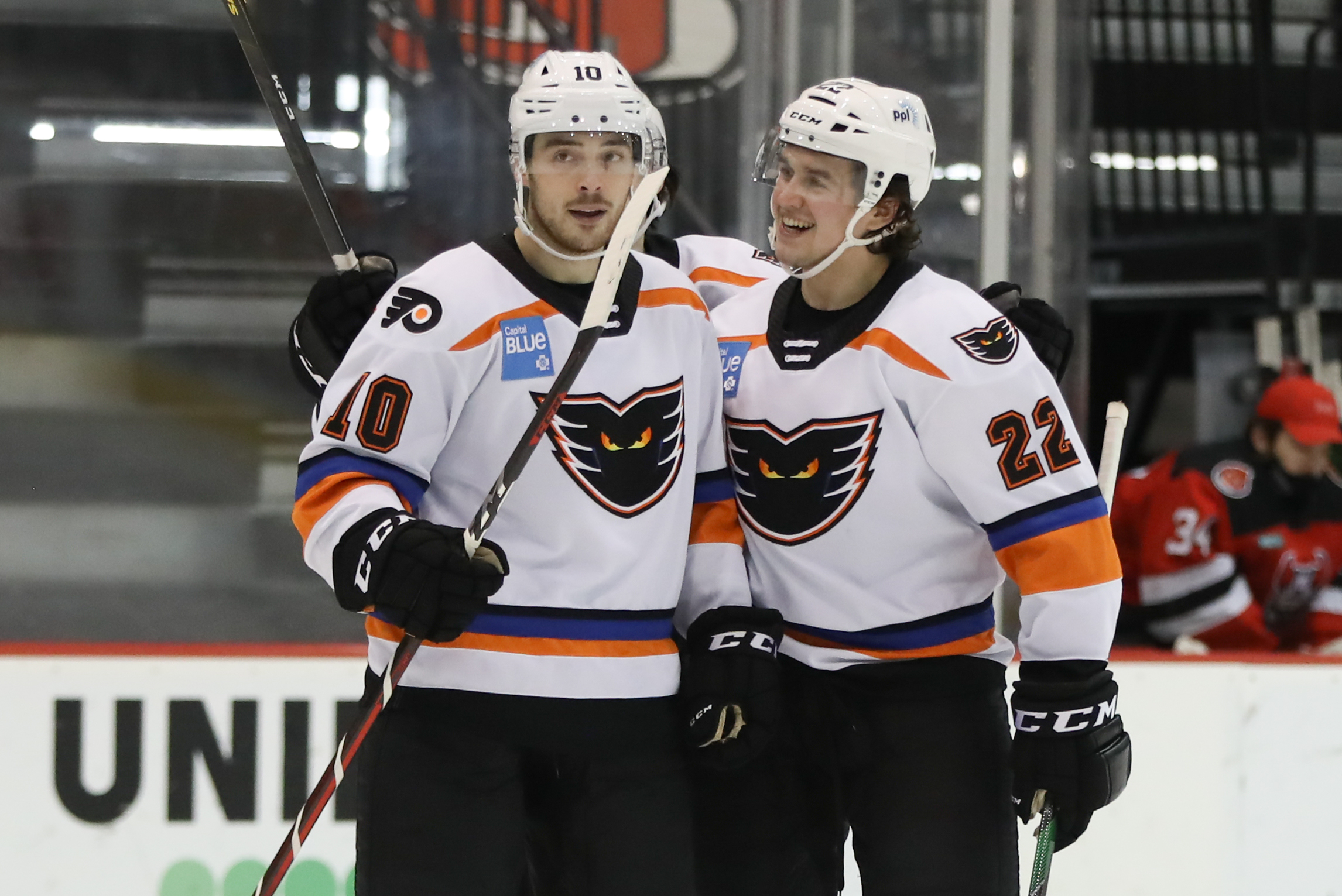 Newark, NJ – Tanner Laczynski provided all the offense for the Phantoms and Alex Lyon turned in a sterling 33-save performance in a 3-2 comeback win at the Binghamton Devils on Friday night in Newark.