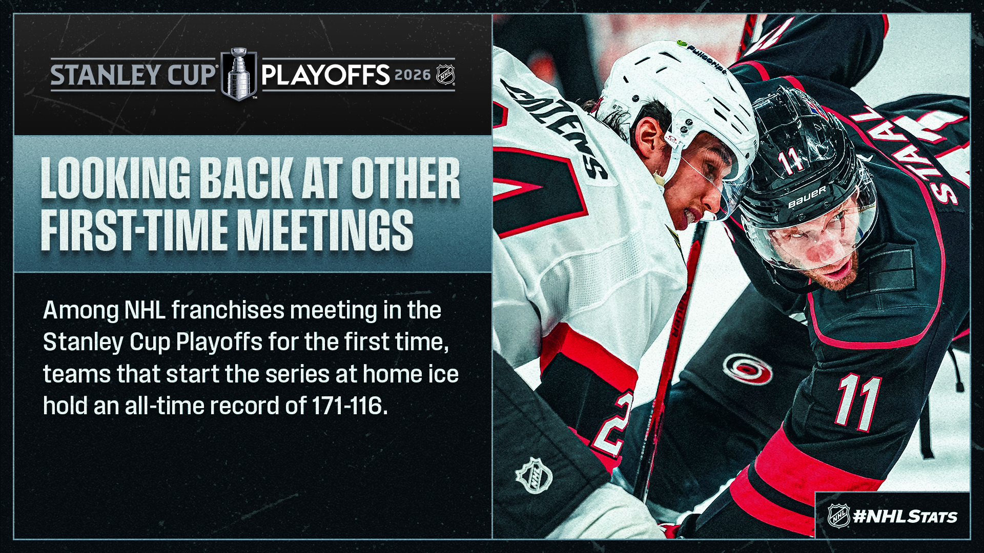 Sebastian Aho and the top-seeded Hurricanes open the 2026 Stanley Cup Playoffs at Lenovo Center when Brady Tkachuk and the Senators visit Raleigh for Game 1 of the first-ever postseason meeting between the clubs – the 288th unique playoff series between NHL franchises (1 of 2 in 2026 R1). Carolina owns an all-time record of 8-7 in its first series against a franchise, while Ottawa is 7-5.