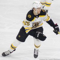Brandon Carlo, former #25 of the Boston Bruins currently playing with the Toronto Maple Leafs