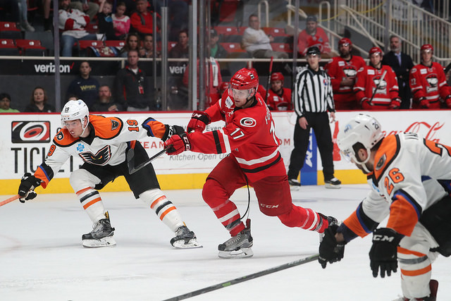 Charlotte concluded the scoring in the opening seconds of the third period on nifty passing in the Phantoms zone setting up Poturalski’s 22nd marker of the season and second of the night.
