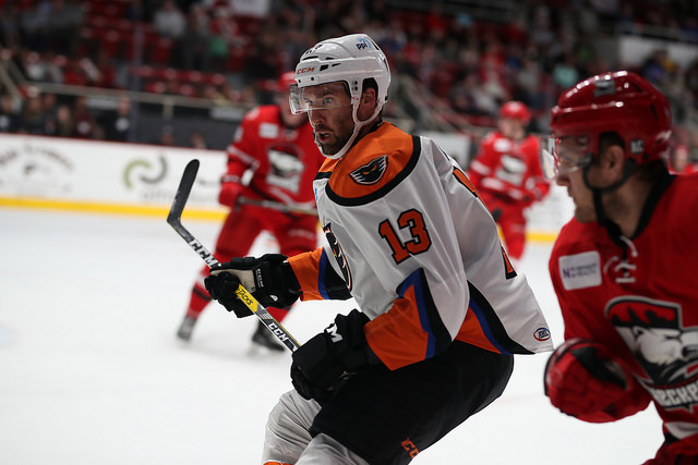 Lehigh Valley was ready to start a big comeback push in the second but the tone changed when instead the Checkers struck again with Poturalski’s 4-on-3 power-play marker from the left circle in the opening minute for a 4-0 lead. And then Dennis Robertson struck for his second of the campaign at 6:32 to boost the advantage to 5-0.