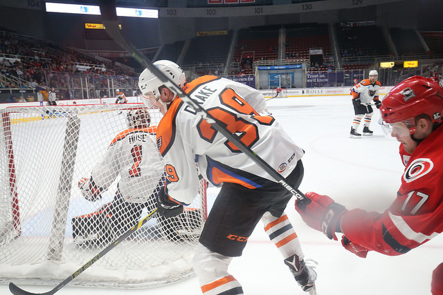 Charlotte, NC – It was the 300th game all-time since the arrival of the Phantoms to the Lehigh Valley four seasons ago but the Charlotte Checkers prevailed in a 6-1 decision on Wednesday night at Bojangles’ Coliseum. Colin McDonald (7th) registered the lone tally for the Phantoms while John Muse battled his way through for the whole stretch.