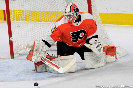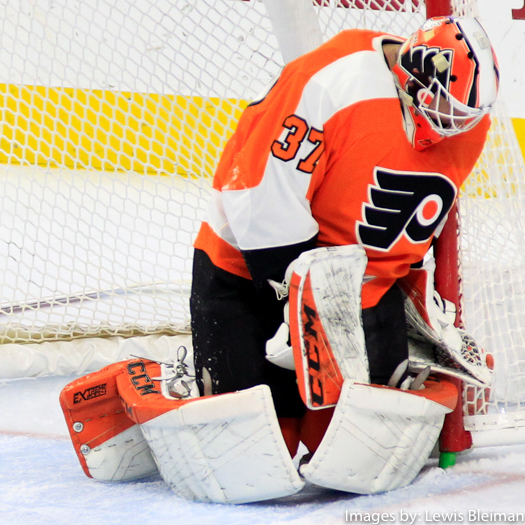 Brian Elliott got the start after returning the Flyers’ lineup from a conditioning stint with Lehigh Valley Phantoms of the American Hockey League; he made 22 saves before getting hook.