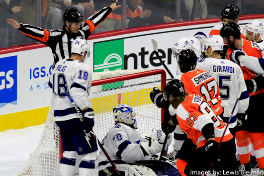 PHILADELPHIA – A three-goal first period by the Tampa Bay Lightning took the starch out of the Flyers Tuesday night as the Bolts won their seventh straight game, 5-2.