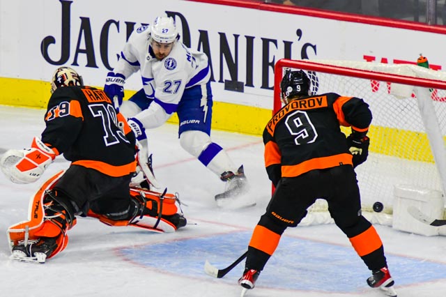 “We knew we had to weather that first six minutes,” Lightning head coach Jon Cooper said. “Short turnaround for us. They pushed and ‘Moose’ [Elliott] was there for us. You need your goalie to make those saves until we get our legs.” Cam Atkinson scored for Philadelphia (8-10-4), which is 0-6-2 in the past eight games. Martin Jones made 10 saves in relief of Carter Hart, who allowed five goals on 15 shots.