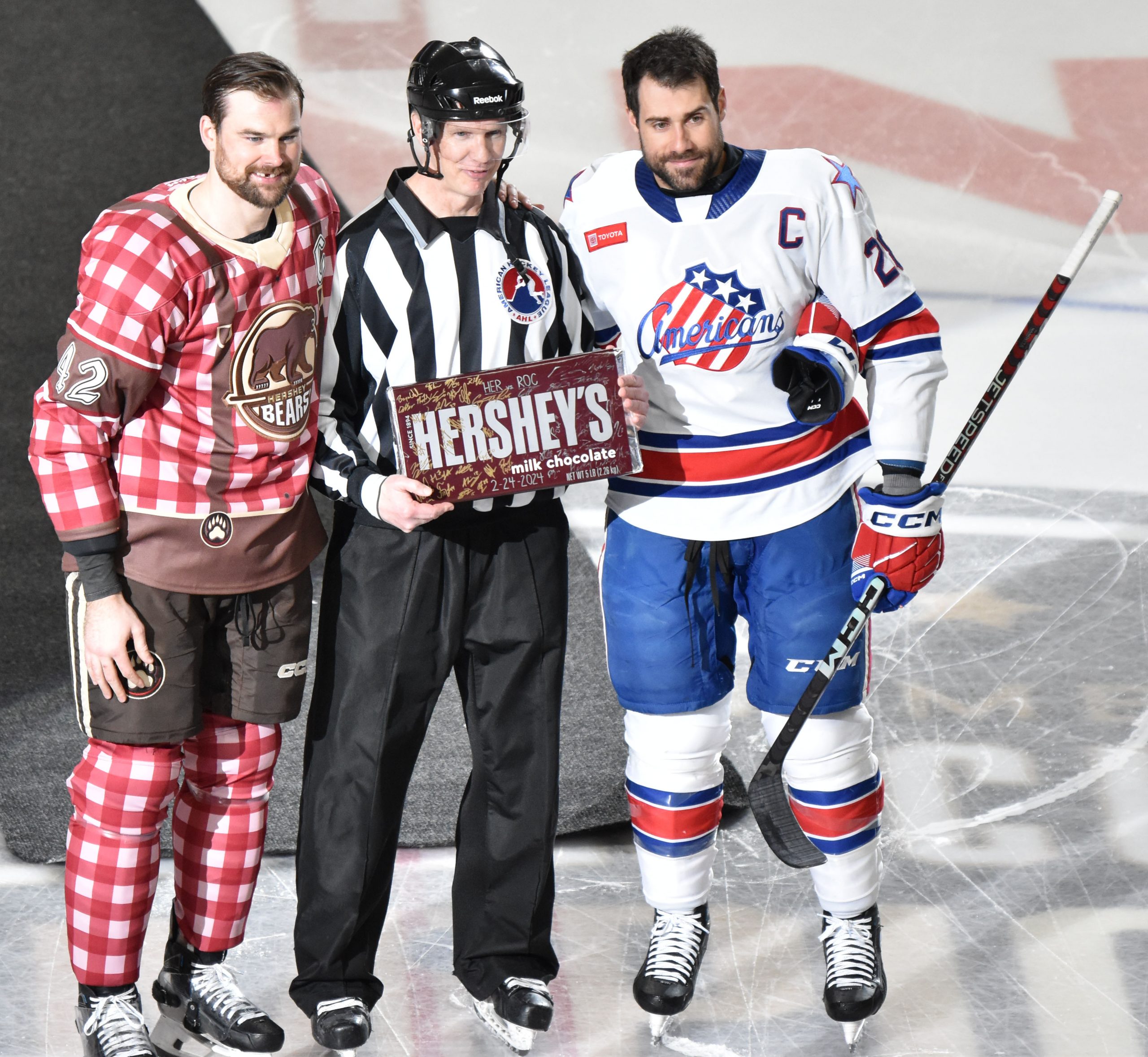 Saturday, February 24, 2024, the Hershey Bears vs the Rochester Americans. The Bears won in overtime by a score of 2-1 over the Americans.