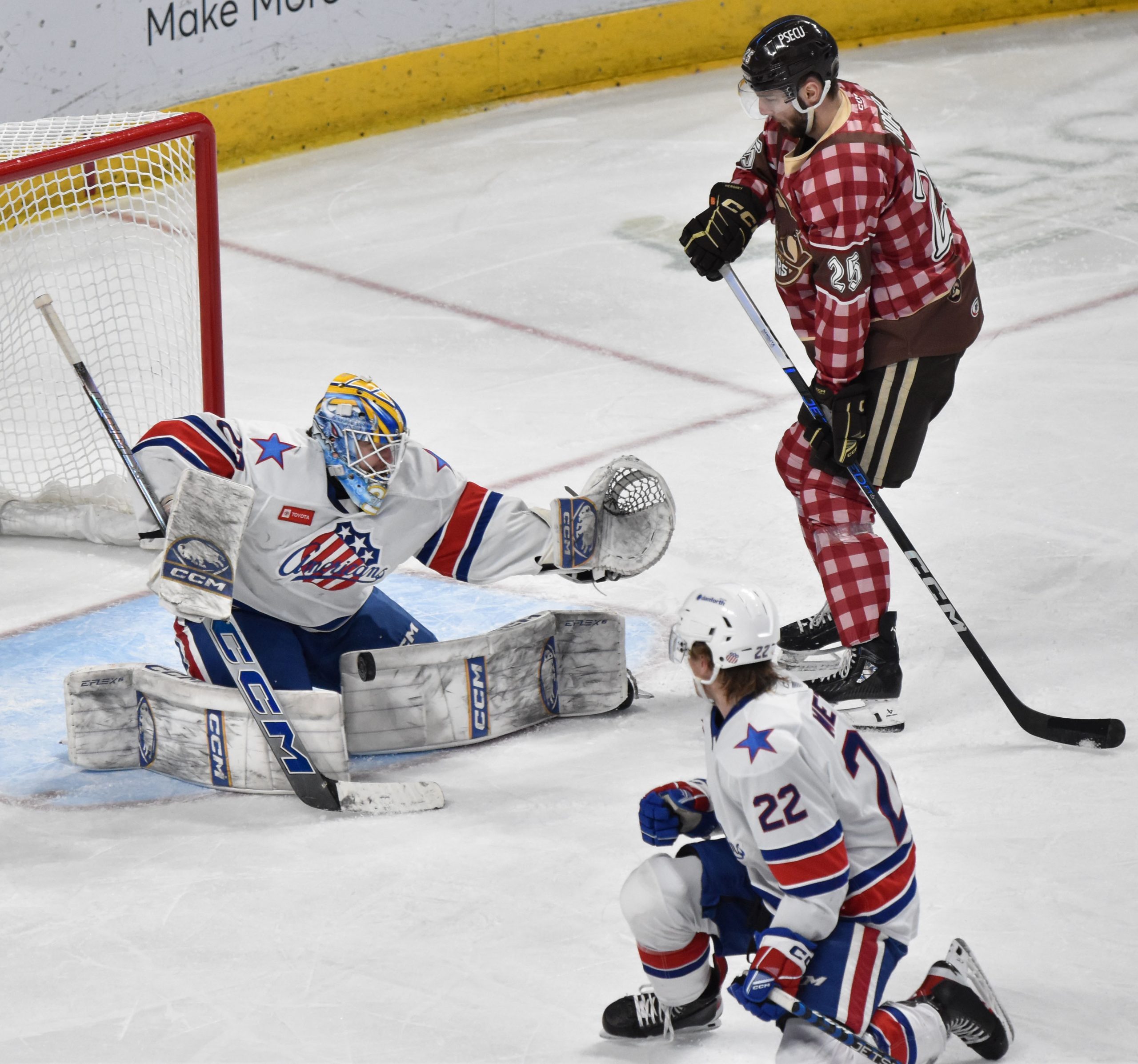 Rochester struck first with a power-play goal at 17:47 of the first period when Isak Rosen knocked a rebound past Hunter Shepard.