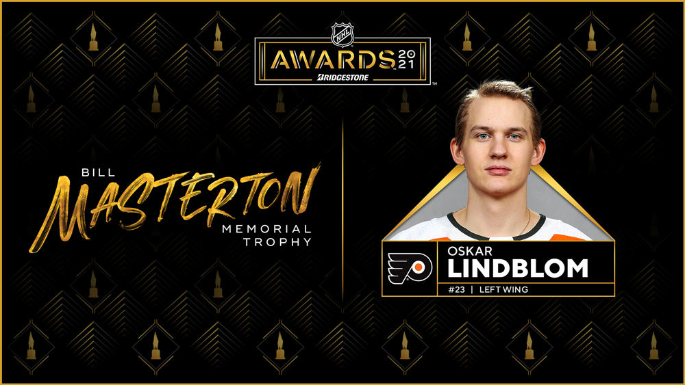 Oskar Lindblom of the Philadelphia Flyers on Tuesday won the Masterton Trophy, awarded annually to the player who best exemplifies the qualities of perseverance, sportsmanship and dedication to hockey.