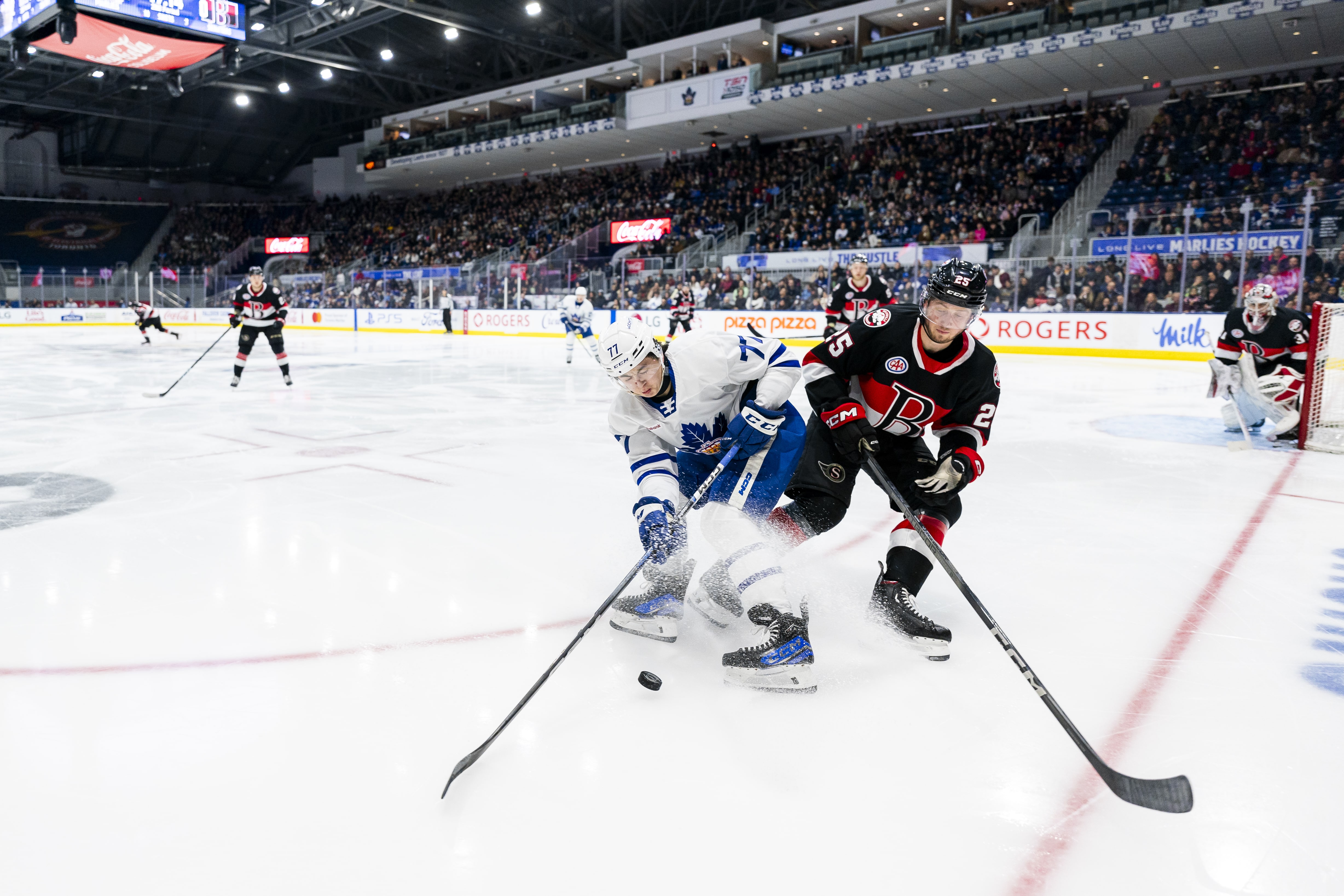 The Toronto Marlies fell to the Belleville Senators 3-2 in overtime on Saturday afternoon at Coca-Cola Coliseum. Toronto is now fourth in the North Division with a 13-10-4-1 record.