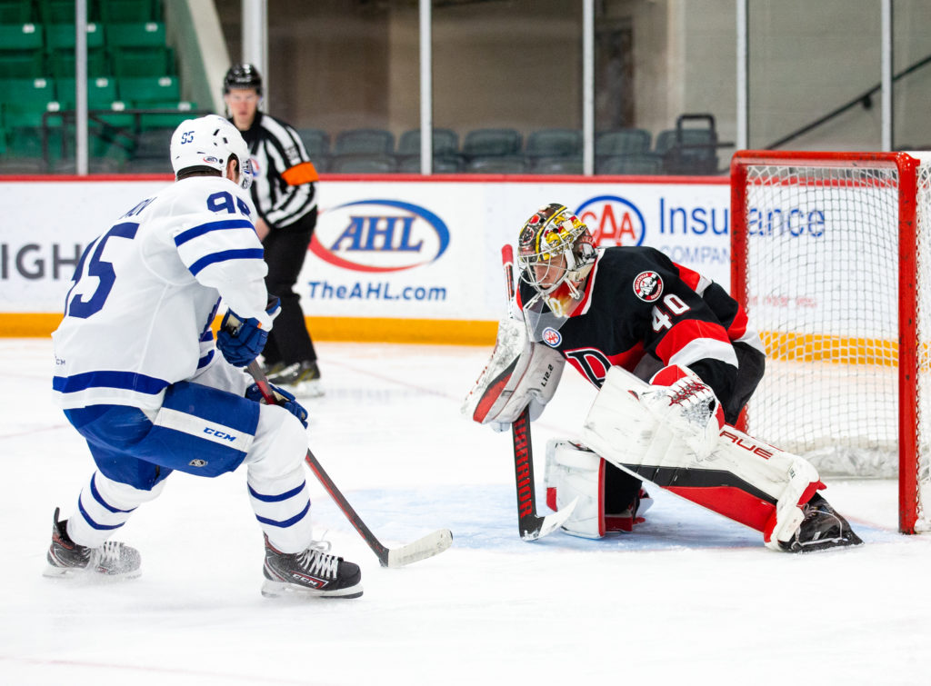 In the third, the Marlies came out flying. Joseph Duszak scored a short-handed goal just over a minute in. Then, a minute later, Joey Anderson scored a quick one off the draw to tie the game at three. Later in the frame, Sokolov gave the Senators the lead on the power-play. With under five minutes remaining in the game, Duszak appeared to tie the game again, but the goal was waived off for a high stick.