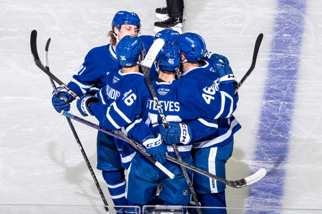 In the first period, it was Toronto who opened the scoring with an early goal by Joseph Blandisi at 5:47. Blandisi currently has points (5-5-10) in five consecutive games. Halfway through the frame, Ryan Chyzowski scored a goal at 12:17 to extend Toronto’s lead to two heading into the second. Â