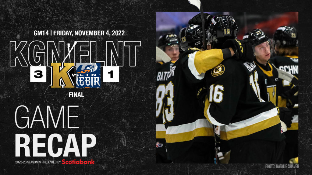 Vaccari robbed a Brennen Othmann one-timed blast from the dot while Flint was on the man-advantage after robbing Riley Piercey from in close earlier, on two quality chances for Flint to get a tally. Matthew Soto and Owen Outwater teamed for the best chance for Kingston in the first frame on an odd man rush late, but Cranley replied to Vaccari’s saves keeping the Fronts off the board.