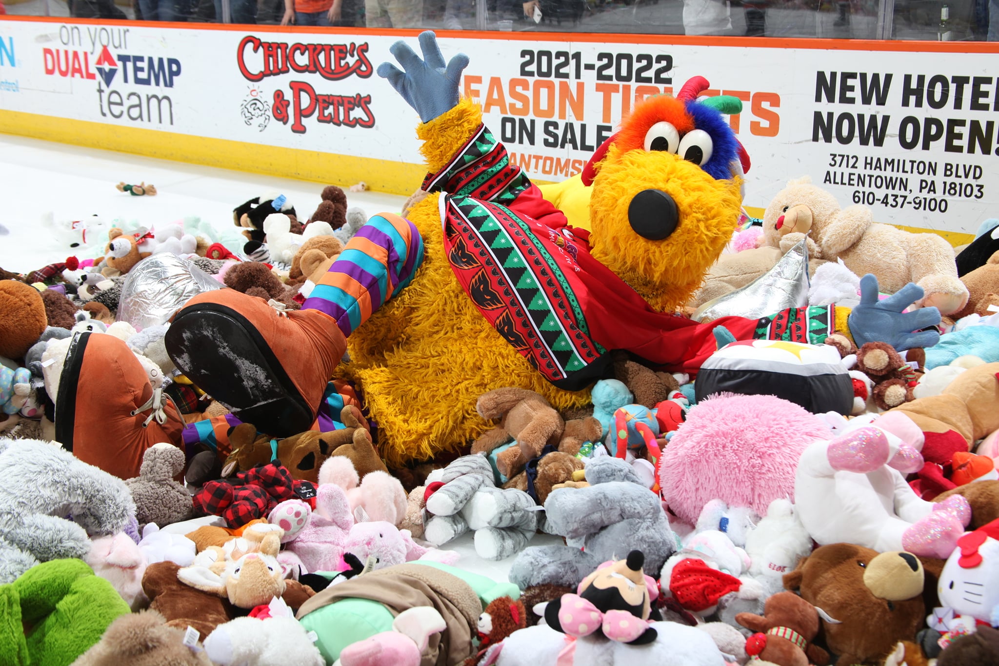 Cam York connected with a speeding Wade Allison rushing up ice on the power play. Allison was denied on the left side of the cage by goalie Daniil Tarasov but Mayhew was there on the other side to pot the rebound for his team-leading eighth goal of the season to spark the Teddy Bear Toss Mania at PPL Center!