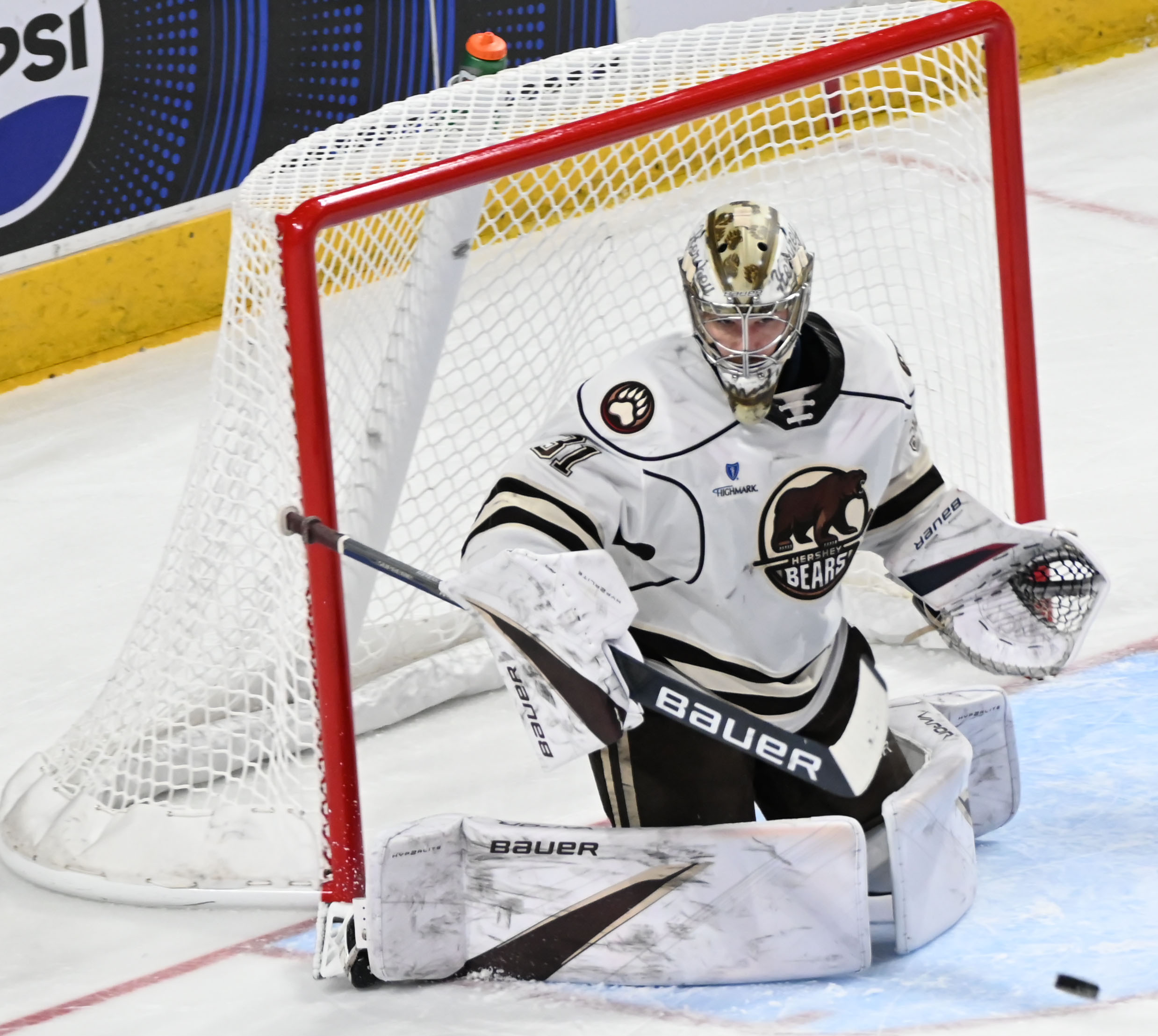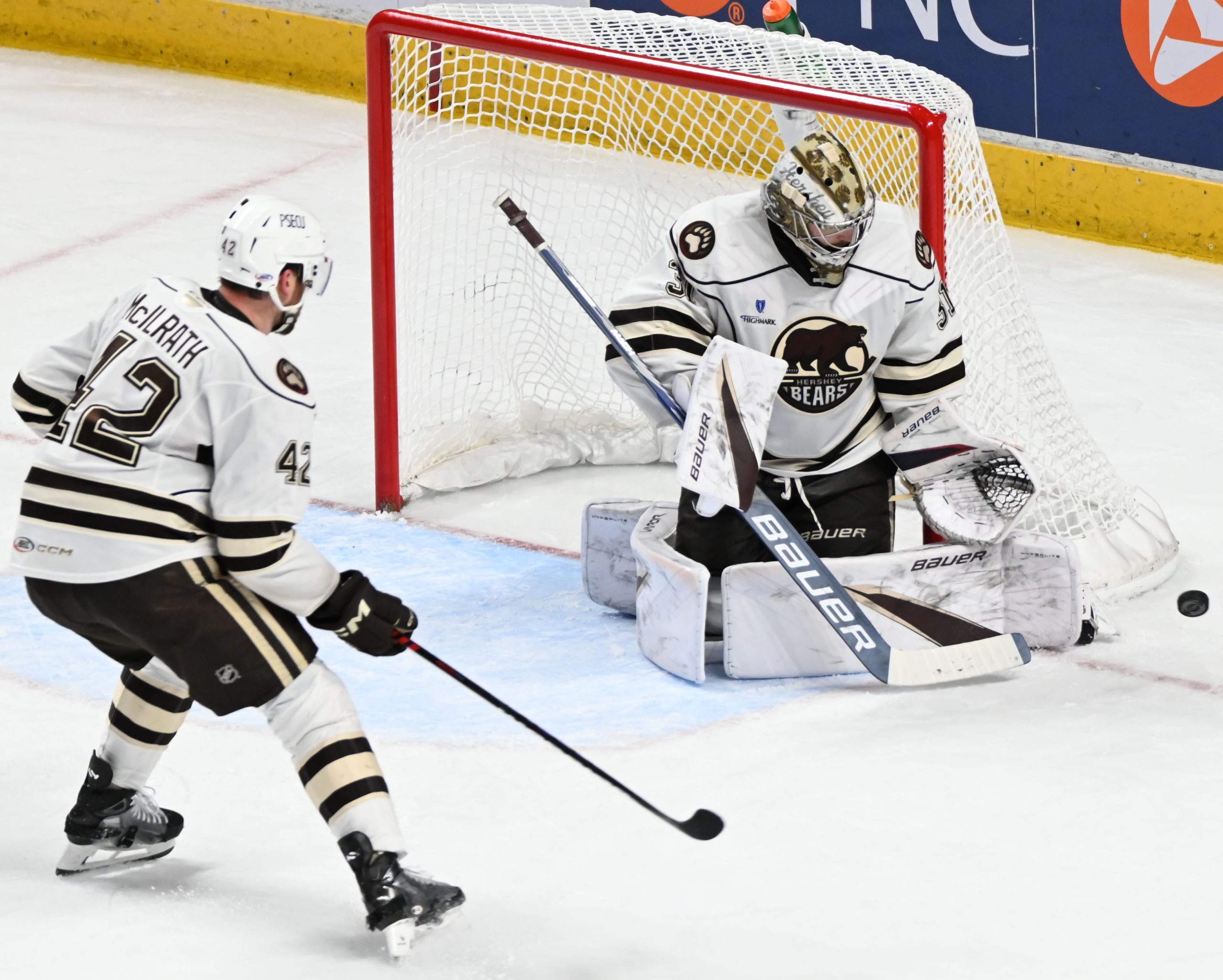 The Bears responded a little over half a minute later, however, as McIlrath unloaded a shot from the right point that beat DiPietro high to the blocker side at 2:38 for McIlrath’s second of the season, with Chase Priskie and Joe Snively contributing assists.
