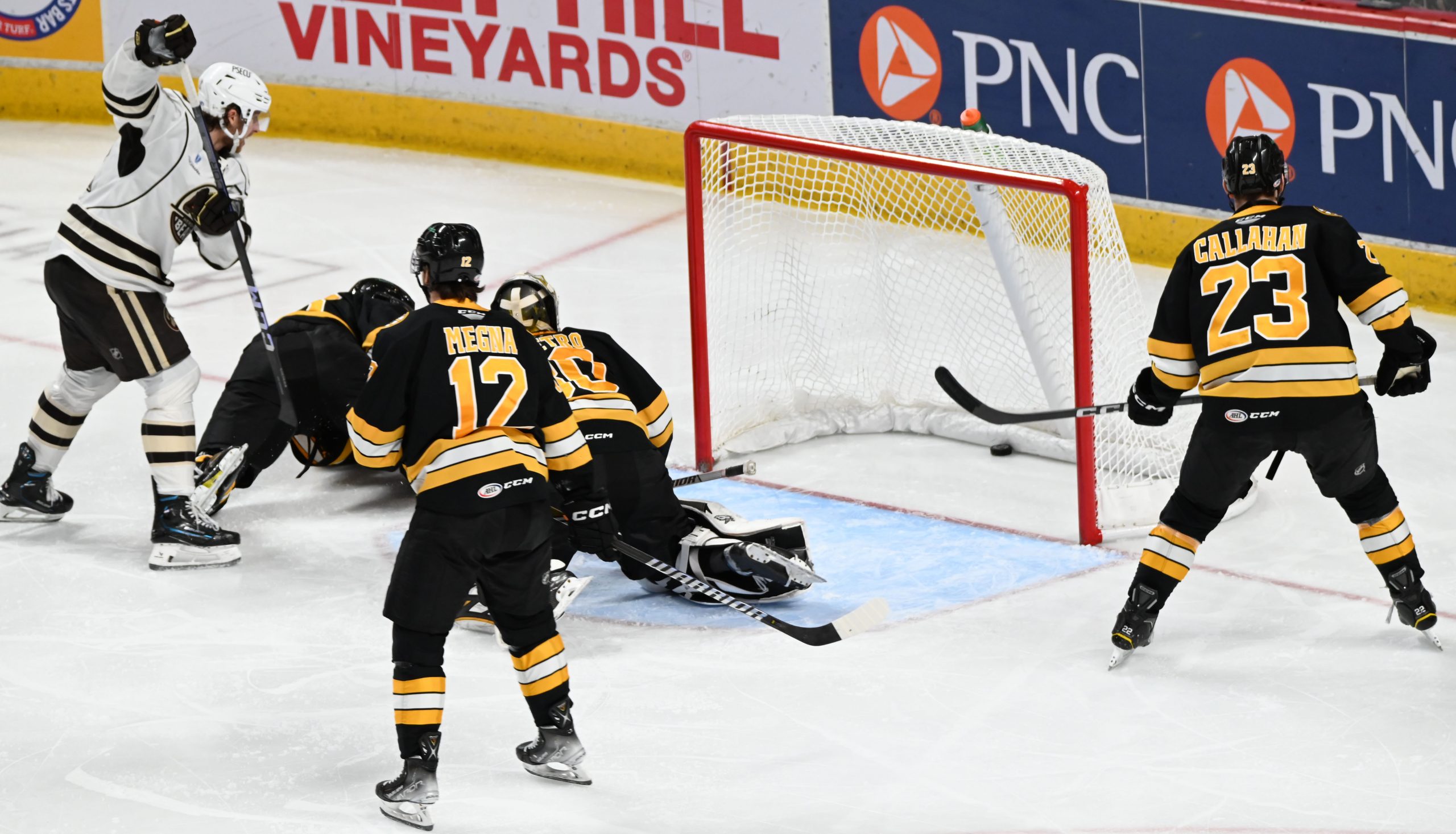 Shots finished 30-22 in favor of the Bruins. Stevenson went 27-for-30 to earn his 10th victory of the season, tops among rookie netminders; DiPietro took the loss for Providence with an 18-for-22 effort. Hershey went 0-for-1 on the power play; the Bruins went 0-for-6 with the man advantage.
