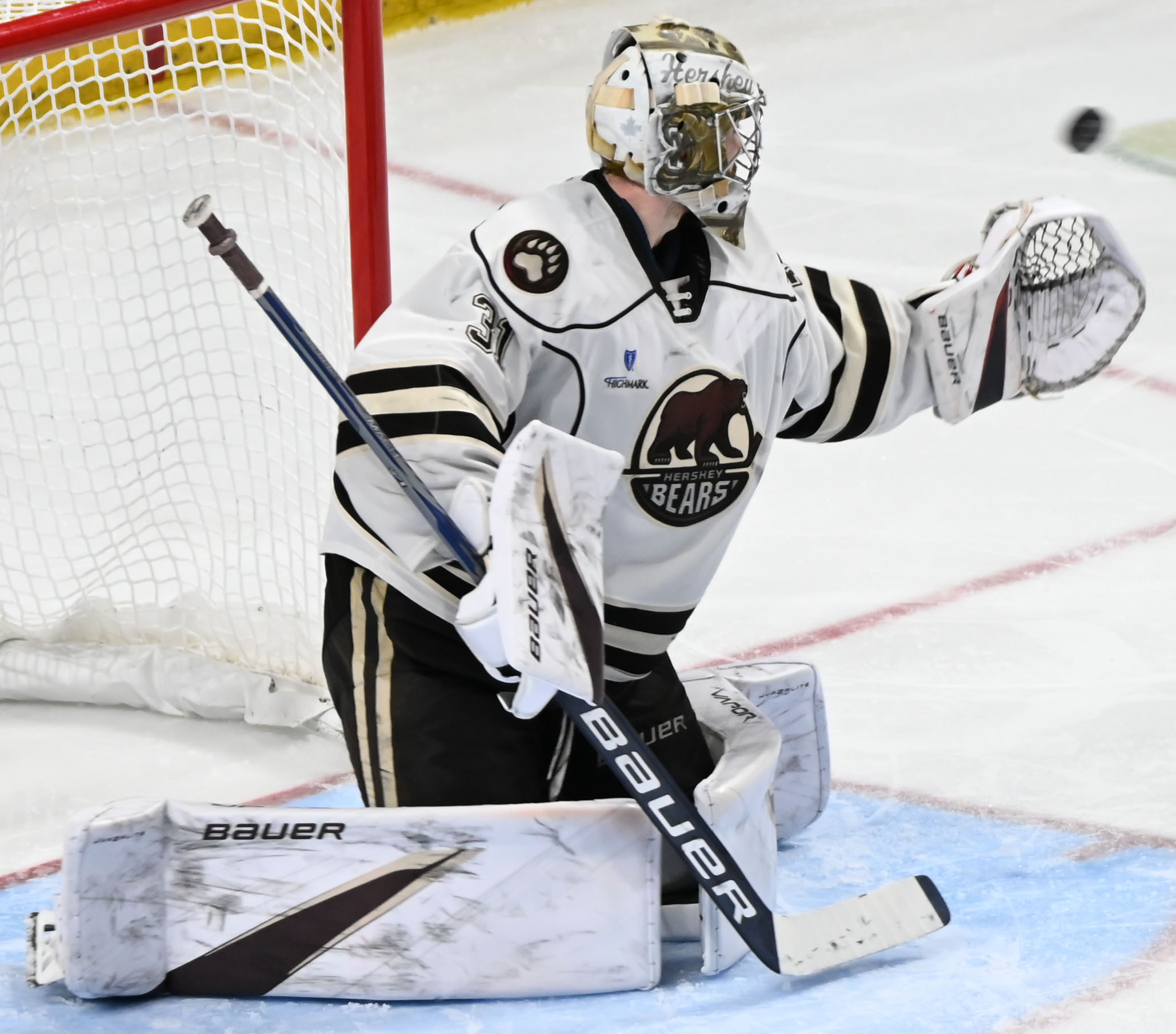 Vincent Iorio opened the scoring for Hershey at 10:15 of the first period when he took a pass from Matt Strome and let a wrist shot go from the right point that evaded the blocker of Michael DiPietro for Iorio’s fourth of the season. Riley Sutter received a secondary assist on the goal.