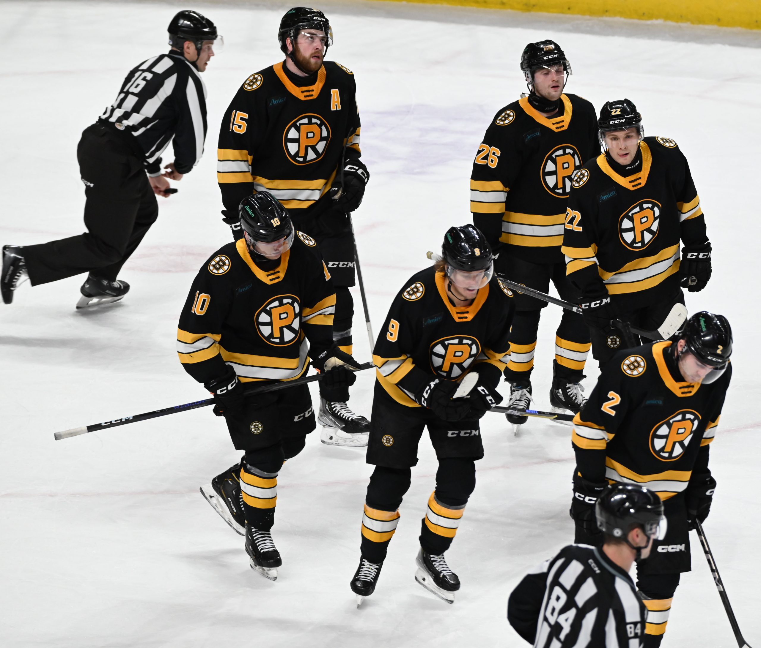 Shots finished 30-22 in favor of the Bruins. Stevenson went 27-for-30 to earn his 10th victory of the season, tops among rookie netminders; DiPietro took the loss for Providence with an 18-for-22 effort. Hershey went 0-for-1 on the power play; the Bruins went 0-for-6 with the man advantage.