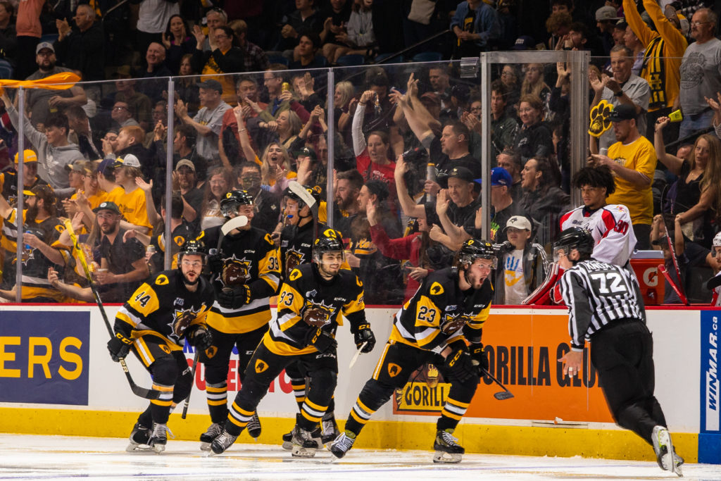 HAMILTON, ONTARIO. Returning home for an intense Game 5 on Sunday afternoon the Bulldogs looked to follow Friday night’s stunning overtime comeback victory and gain a 3-2 series lead putting the Robertson Cup within reach.