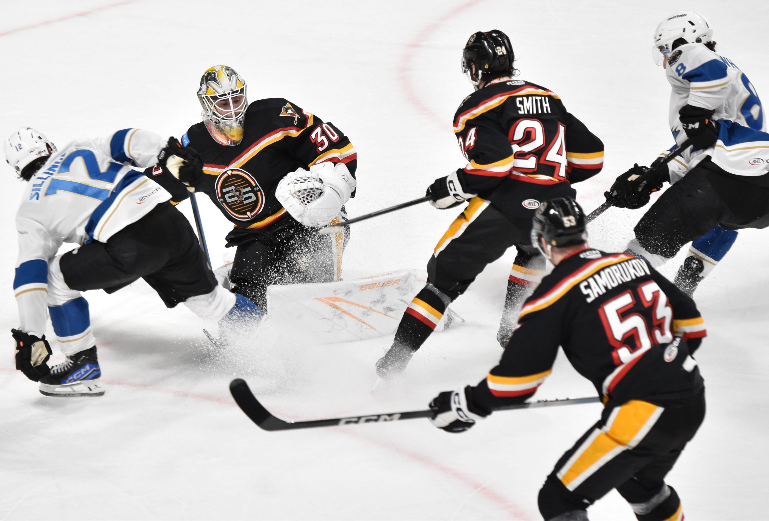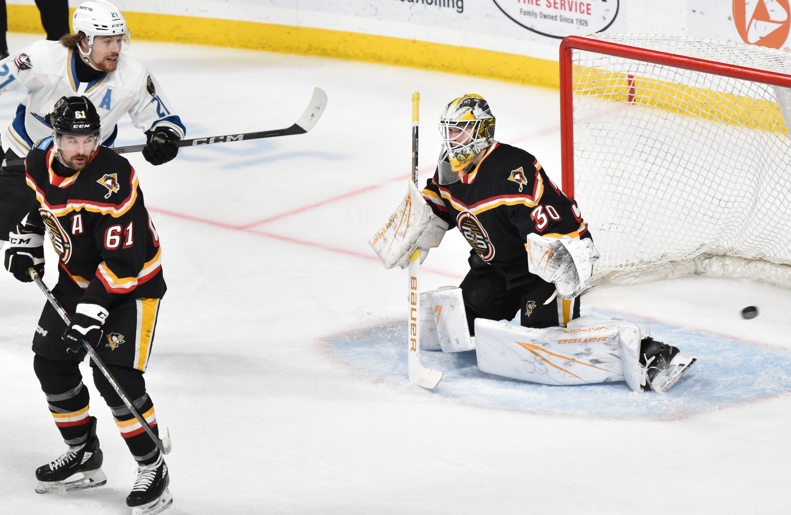Cleveland’s Pavel Cajan stopped 29 shots in defeat while Wilkes-Barre/Scranton’s Joel Blomqvist made 28 saves for the win.