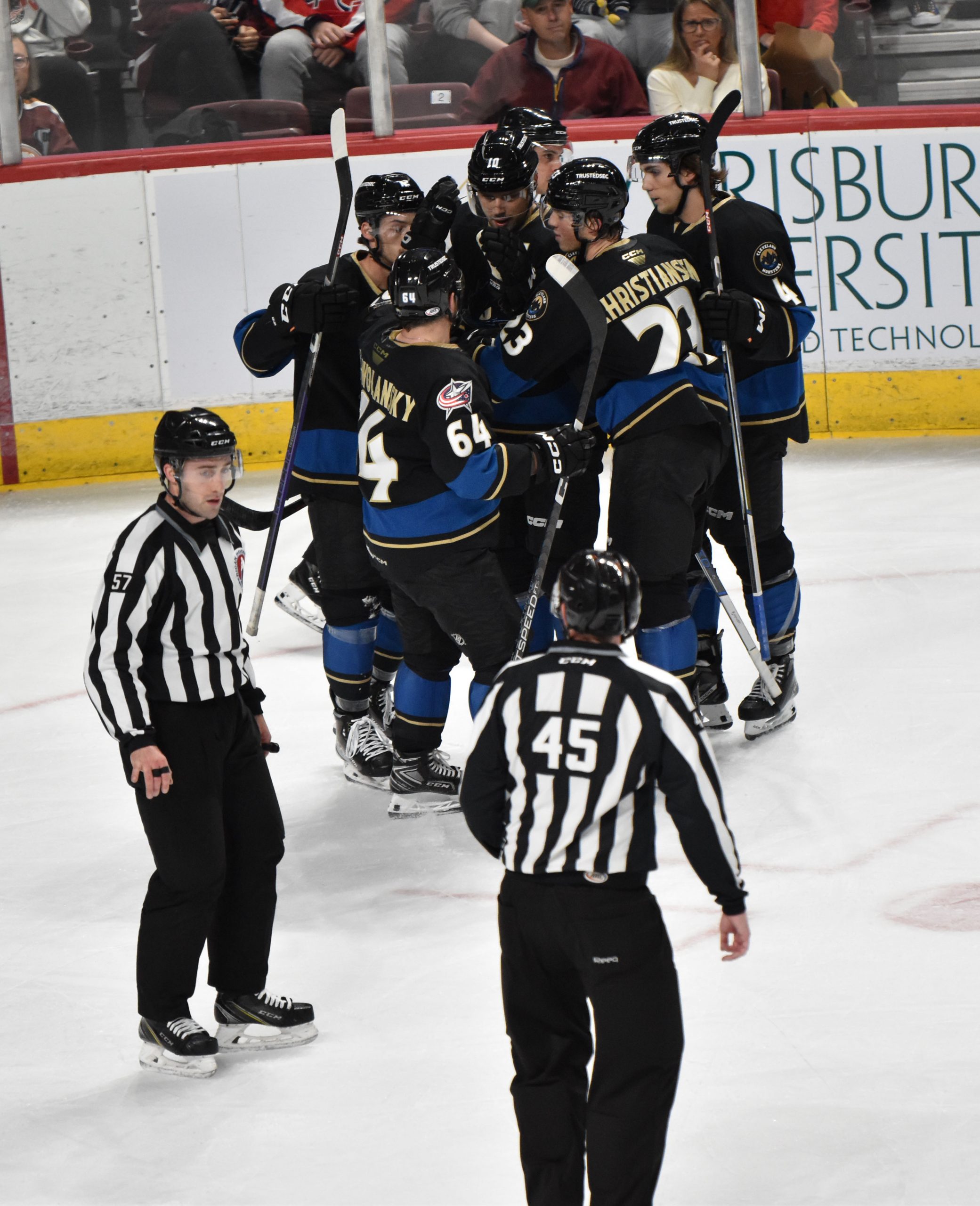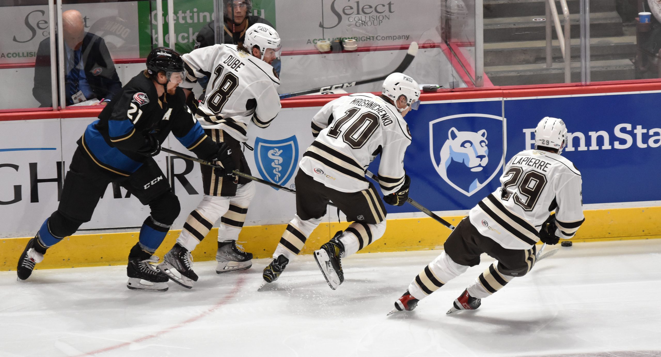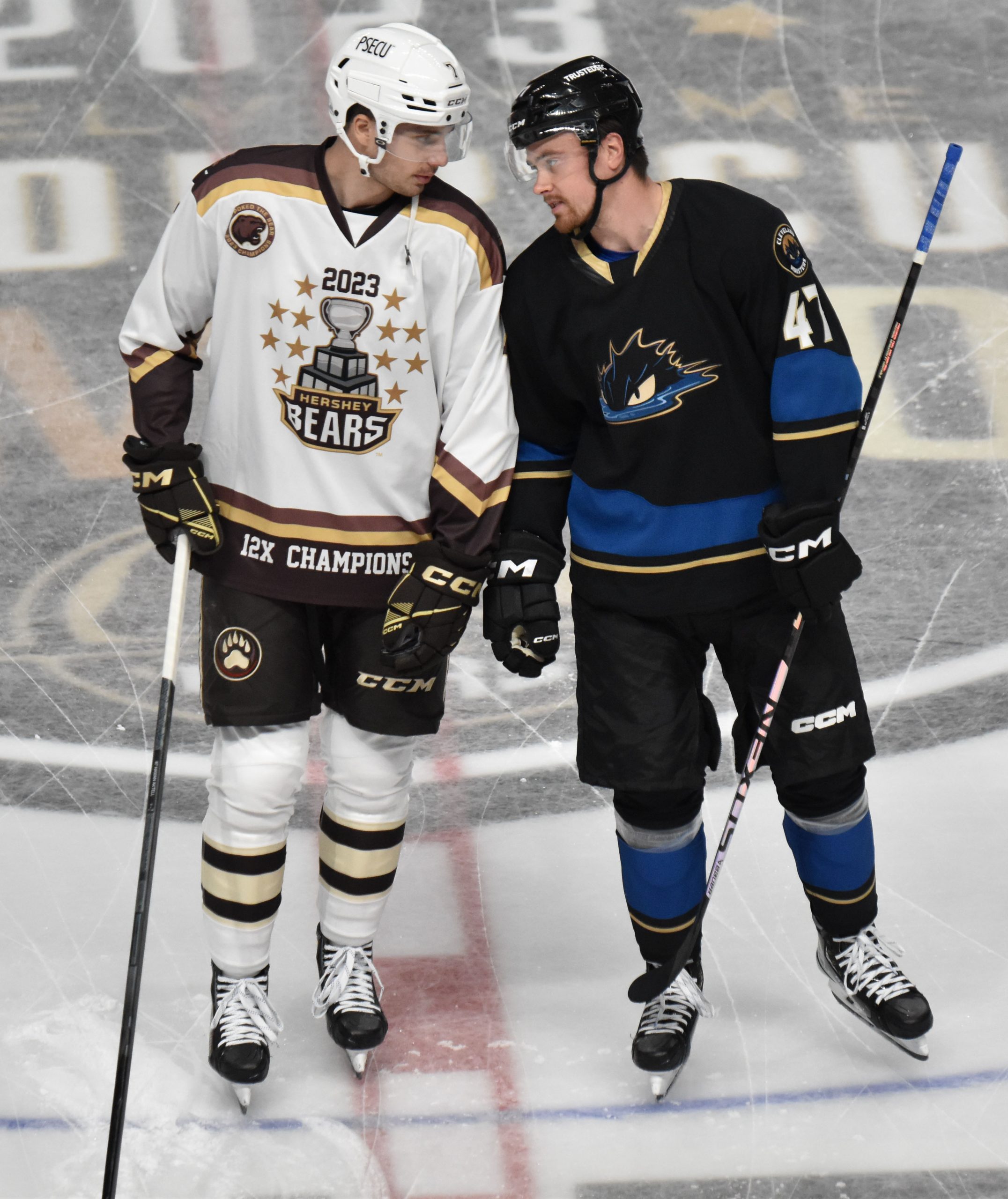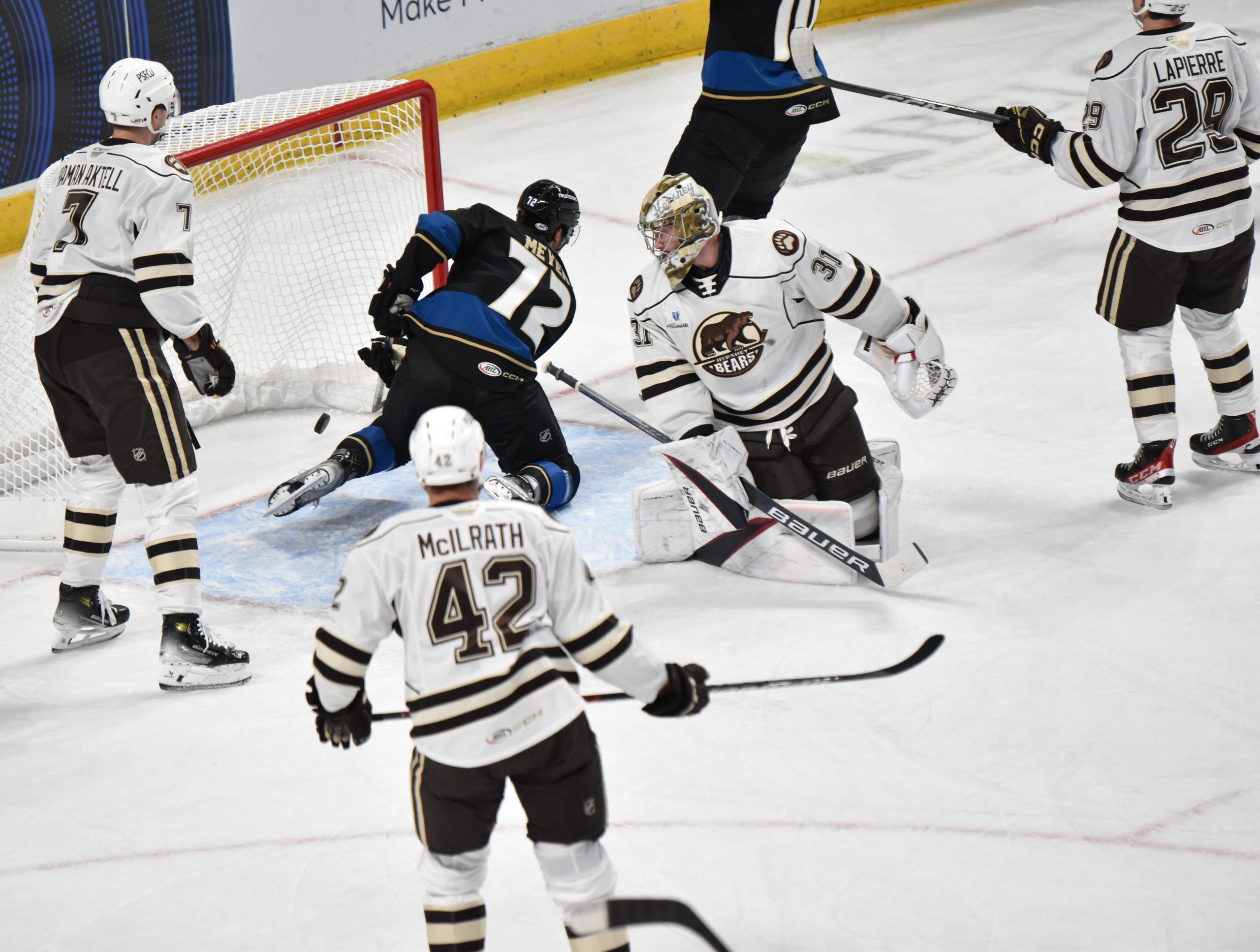 The Bears started the game with a goal from Hardy Häman Aktell at 7:32 and a power-play tally from Ethen Frank at 11:59, but Brendan Gaunce grabbed his first marker of the year at 15:19 off helpers from Trey Fix-Wolansky and Jake Christiansen to cut into Hershey’s lead.
