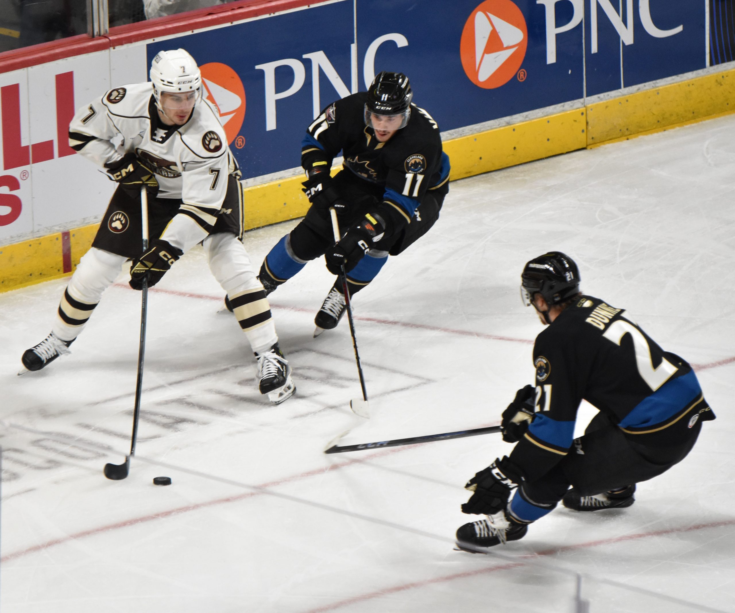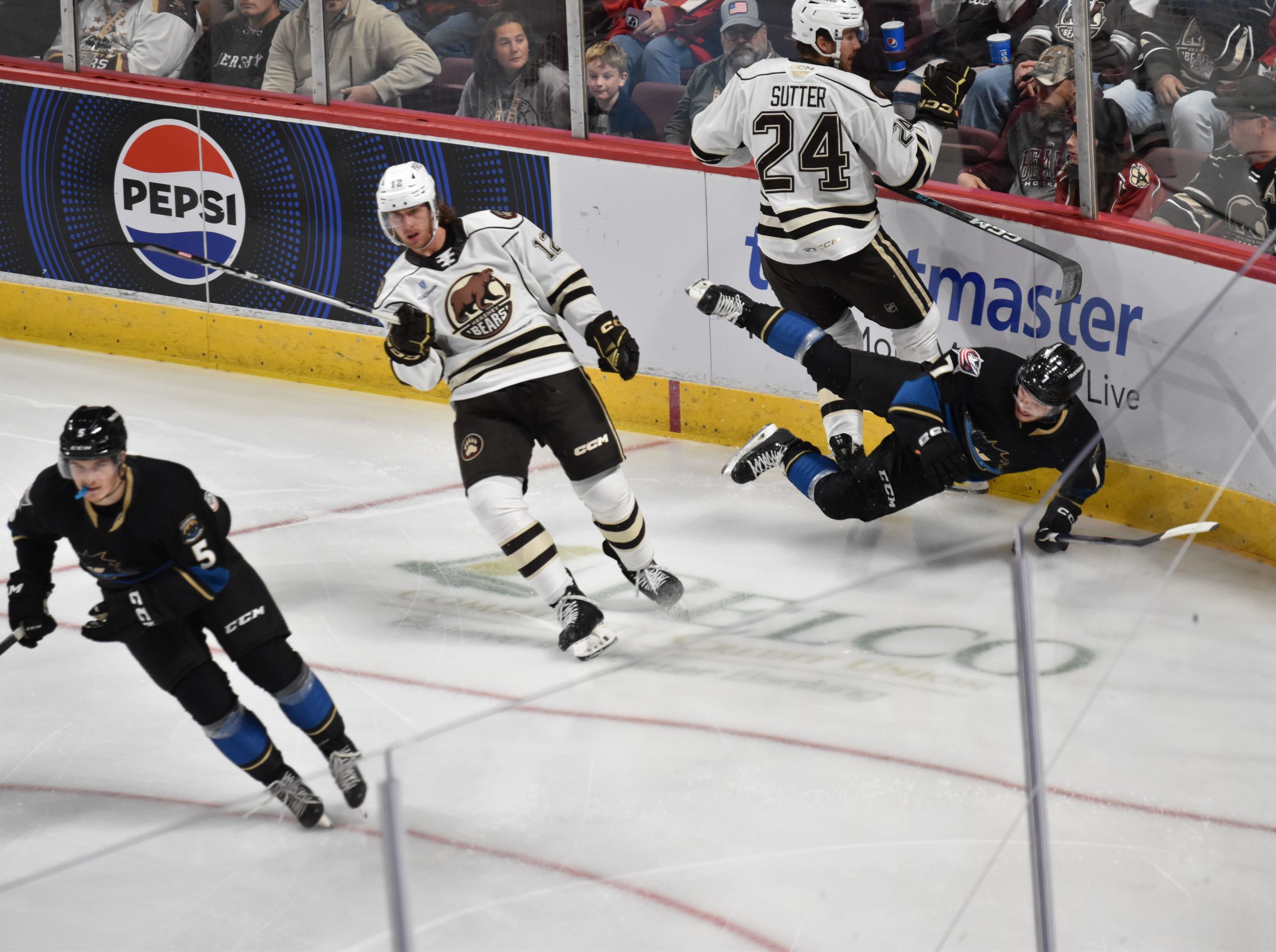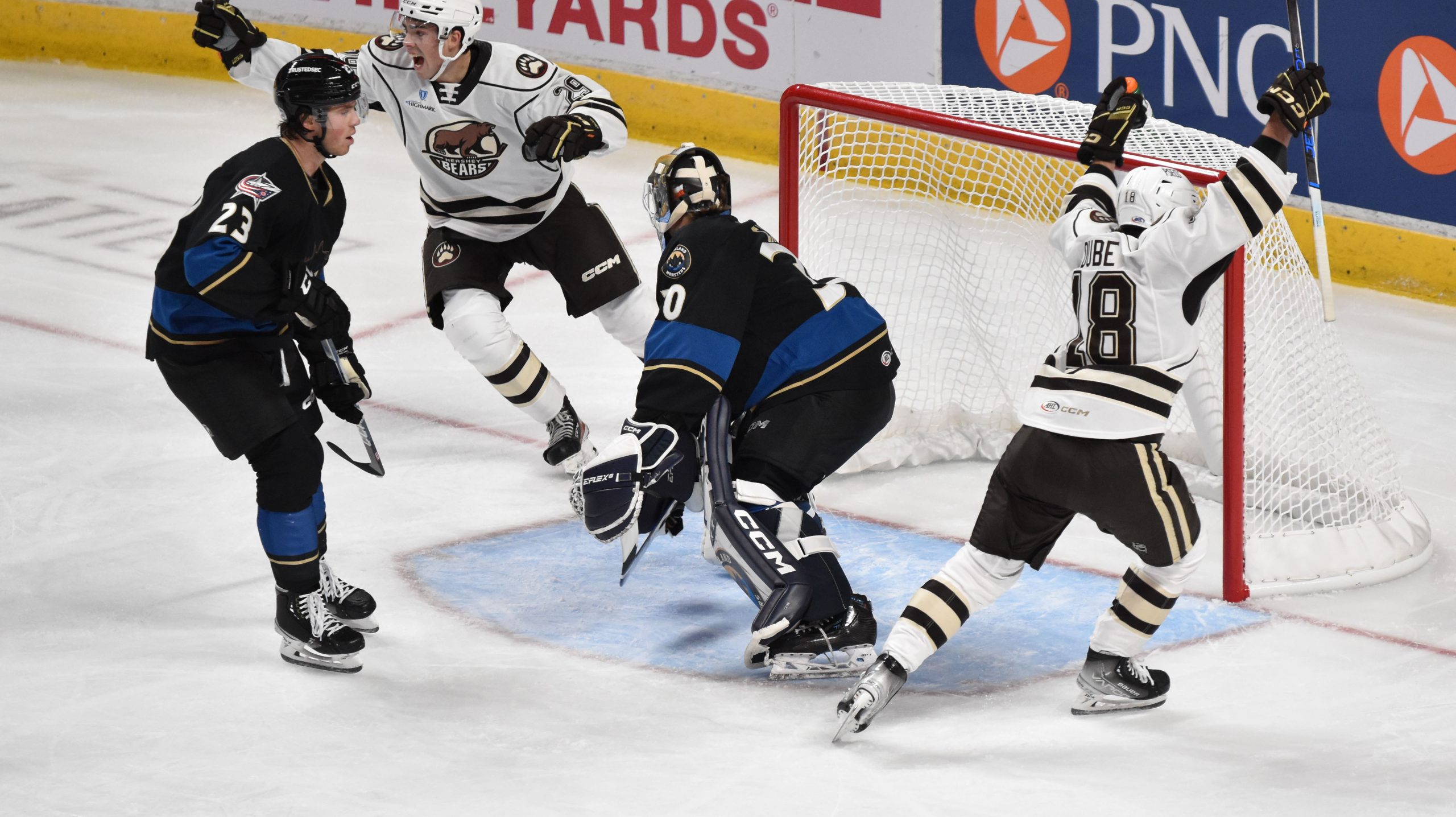 The Bears added a goal from Mike Vecchione at 17:28 to send the Monsters into the first intermission trailing 3-1.