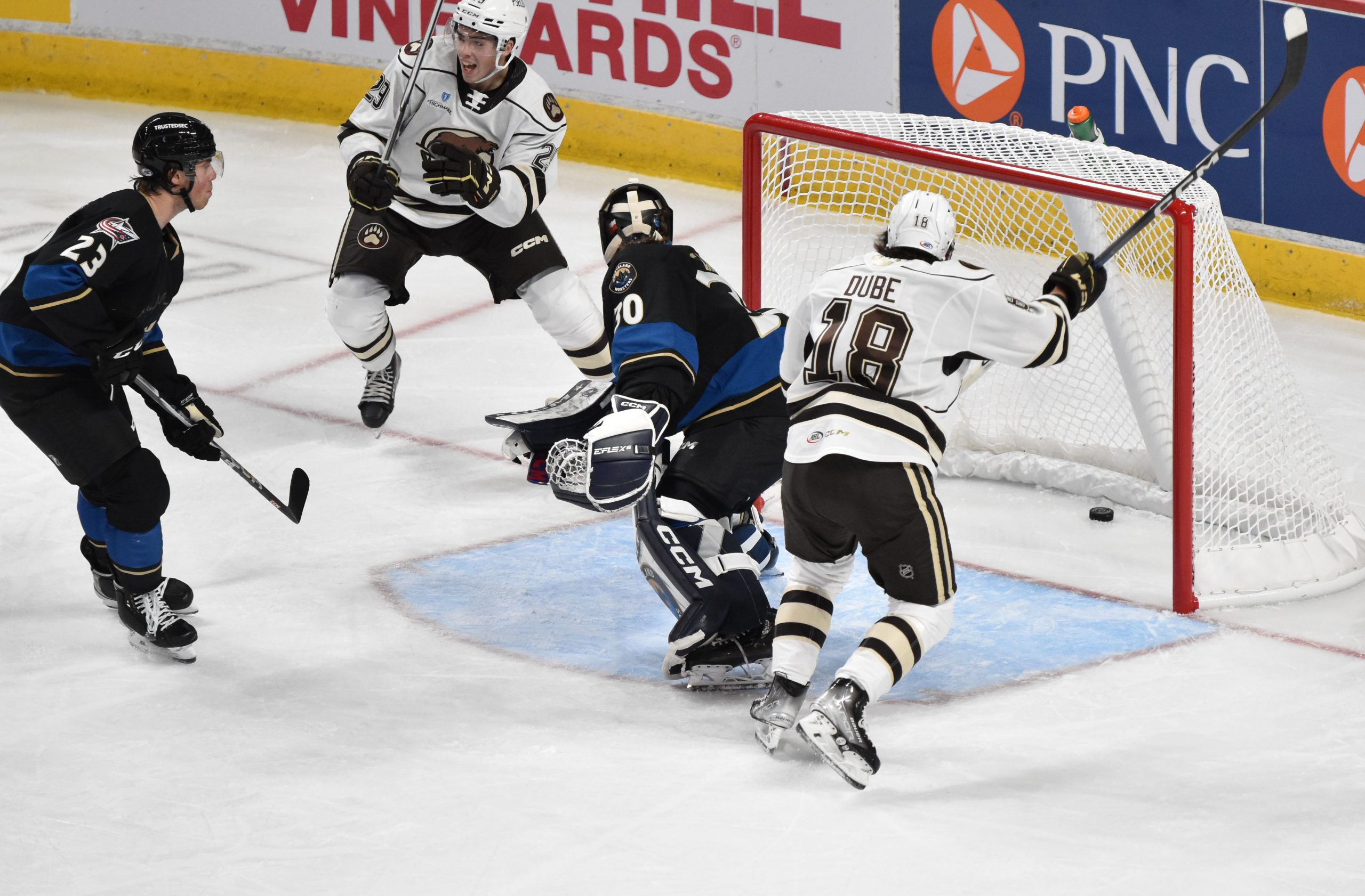 Marcus Bjork notched a tally at 8:54 of the second period with assists from Dmitri Voronkov and Mikael Pyyhtia, but Hershey’s Pierrick Dubé converted on the man advantage at 19:04 putting Cleveland behind 4-2 after 40 minutes.