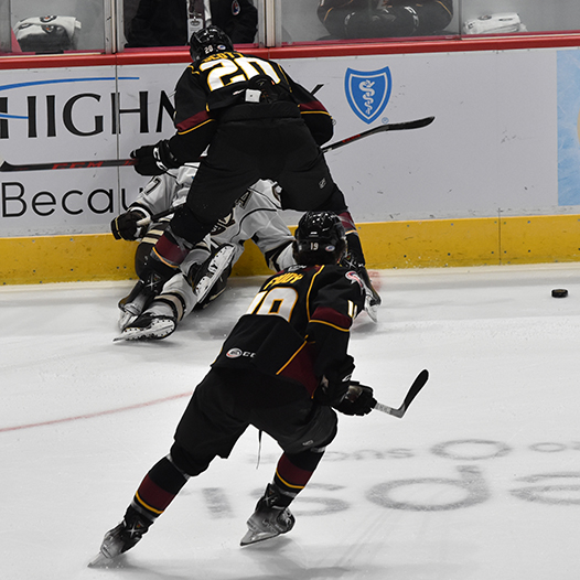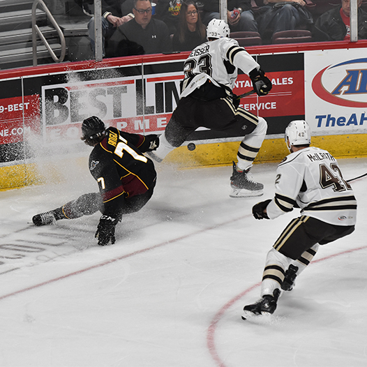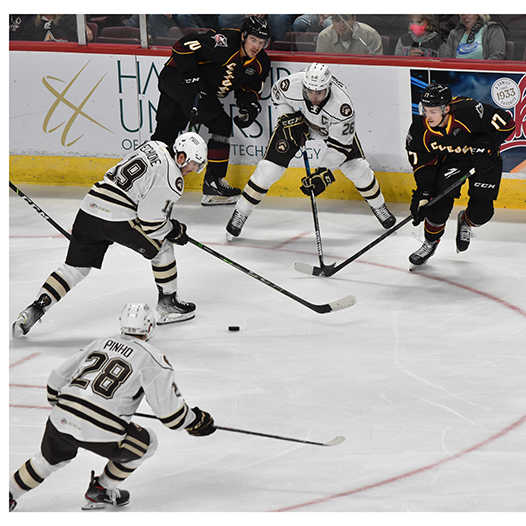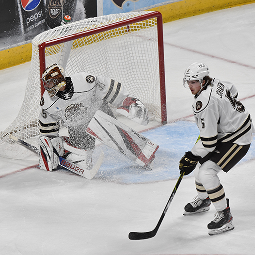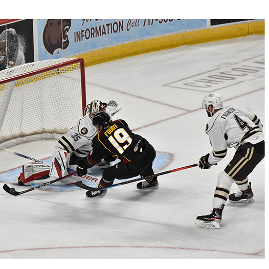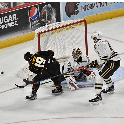 The Monsters struck first at the 7:12 mark of the opening stanza and led 1-0 after 20 minutes. Liam Foudy squeaked a backhander low to the ice past Bears netminder Zach Fucale for his second goal of the season. Shots after 20 minutes were 13-9 Hershey. Next period, Franson’s equalizer came on a 5-on-3 power play for the Bears. After Josh Dunne and Cole Clayton were penalized 16 seconds apart, Franson blasted home his first goal as a Bear at the 15:00 mark.