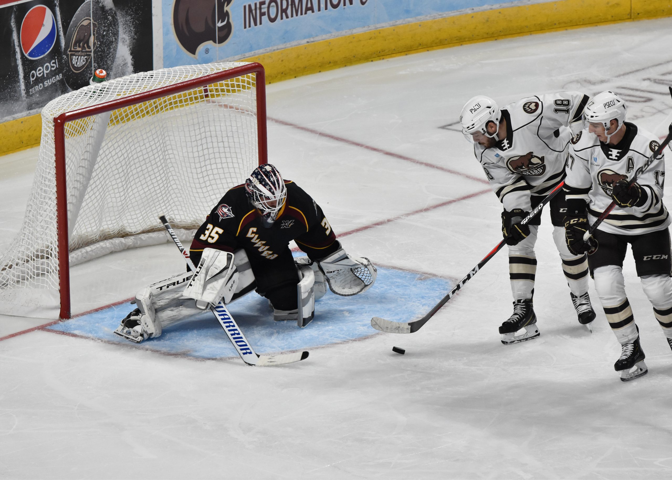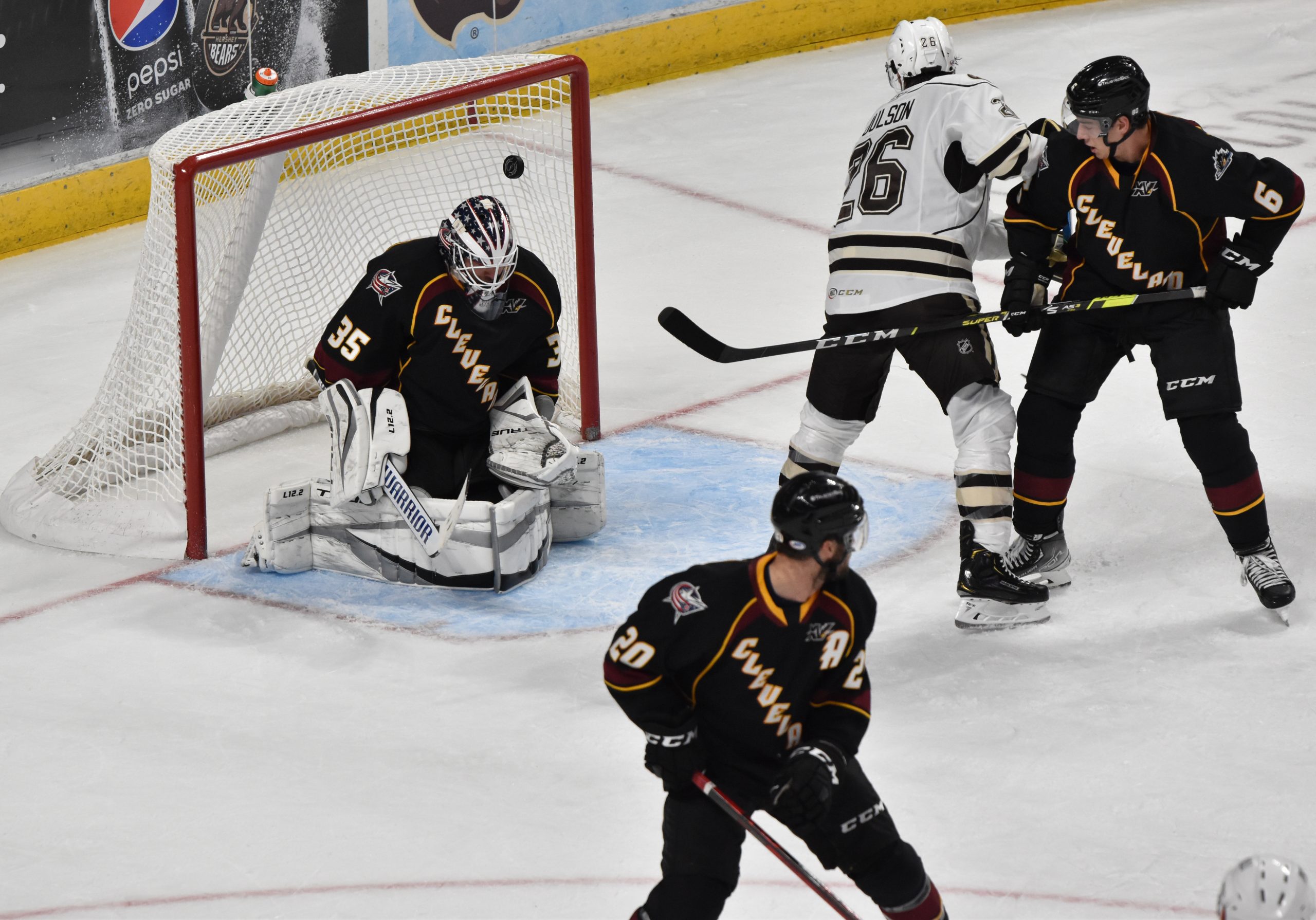 The Hershey Bears dropped a 2-1 shootout affair against the Cleveland Monsters on Saturday night in front of 7,612 fans at GIANT Center. Hershey’s record shifts to 3-1-1-1 and will rematch Cleveland on Sunday at 5 PM. Cody Franson scored the lone goal for the Chocolate and White.