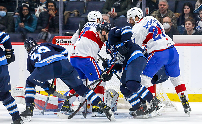 The Manitoba Moose (34-20-4-2) rematched with the Laval Rocket (31-21-3-2) Wednesday night at Canada Life Centre. The Moose were coming off a 4-3 shootout victory over Laval the previous night.