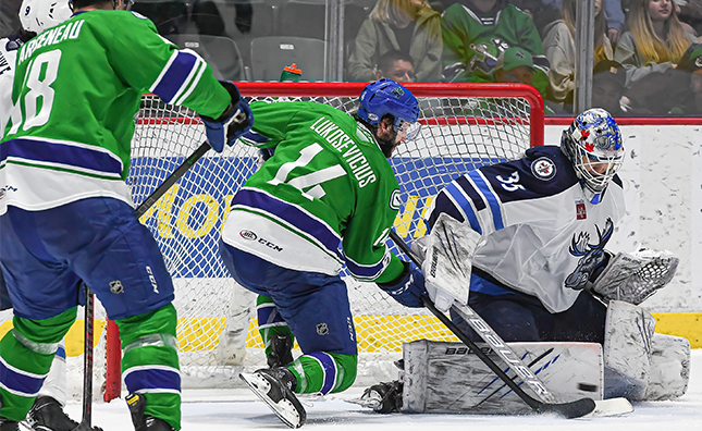 The second period saw the Moose and Canucks put together an impressive defensive effort. Manitoba was sent to the box three times in the middle frame, but the penalty kill was up to par and held the Canucks off the board. The visiting Moose finished the second frame with seven shots, while the Canucks fired eight on Holm.