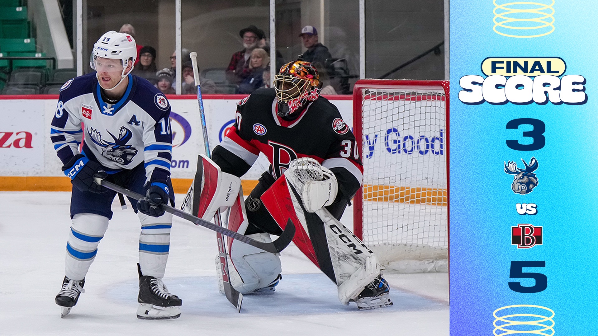The Manitoba Moose (18-30-1-1) dropped a 5-3 decision to the Belleville Senators (24-18-4-4) at CAA Arena on Friday. The Moose were coming off a 3-2 overtime win against the Senators on Wednesday.