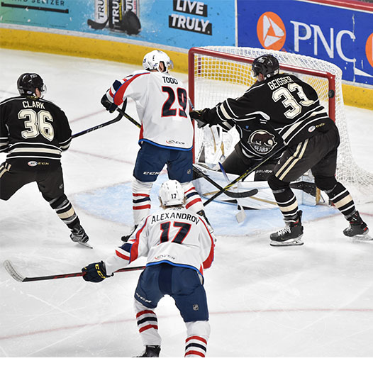 Hershey struck first only 36 seconds into the game to grab a 1-0 lead. Cody Franson found an open Shane Gersich at the backdoor for the layup. Garrett Pilon recorded the secondary helper for his 22nd assist of the season. At the 15:42 mark, the Chocolate and White turned a key stop by Zach Fucale into a 2-0 lead. On the transition following Fucale’s save, Pilon earned his second assist of the night by setting up Mason Morelli along the right wing. Shots after 20 minutes were 10-7 Hershey with the Bears leading 2-0.