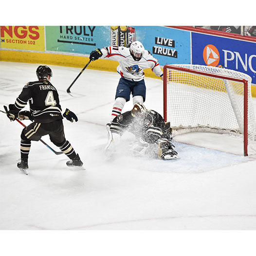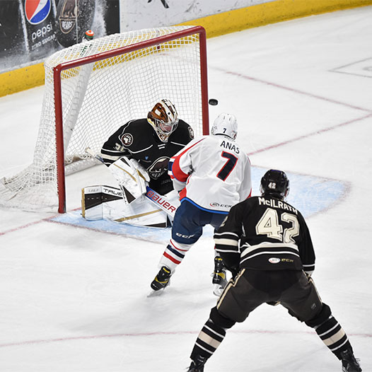 The Thunderbirds tied the score at 2-2 with 4:33 remaining in regulation on Brady Lyle’s fourth goal of the campaign. But in sudden-death overtime, Morelli fielded a pass from Gersich and wired home his 11th goal of the season for the game-winning goal at 2:04. Final shots on goal totaled 26-25 Springfield.
