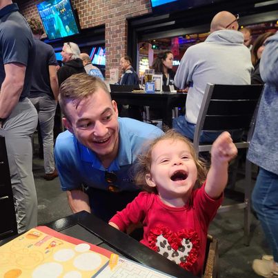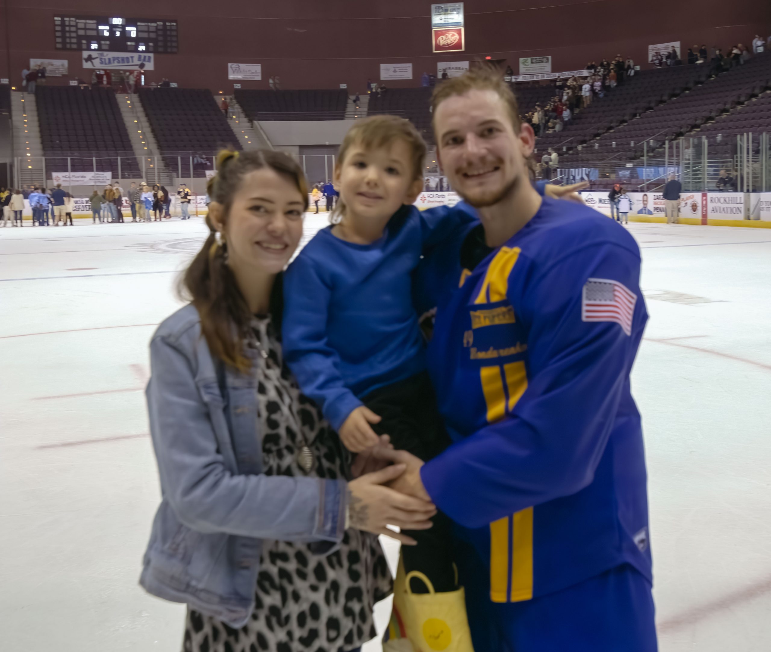 “He’s number 49 on the ice, but number one in our daughter’s heart,” says Ice Flyer fan Andy Schmitz, pictured here with Callie and Ivan.