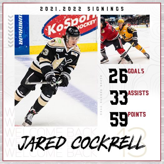 Prior to turning pro, the Kents Hill, Maine native played college hockey for parts of five seasons. He spent four years at Colgate University, then transferred to St. Cloud State University for the 2020-21 campaign. Cockrell posted a pair of 17-point seasons at Colgate, in addition to a nine-goal output during his sophomore season. Last year, Jared accumulated seven points at St. Cloud State, with his biggest being an assist on the winning goal in the game that sent the Huskies to the NCAA Frozen Four. He also experienced team success in juniors, as he won the RBC Cup with the Brooks Bandits in 2015-16.