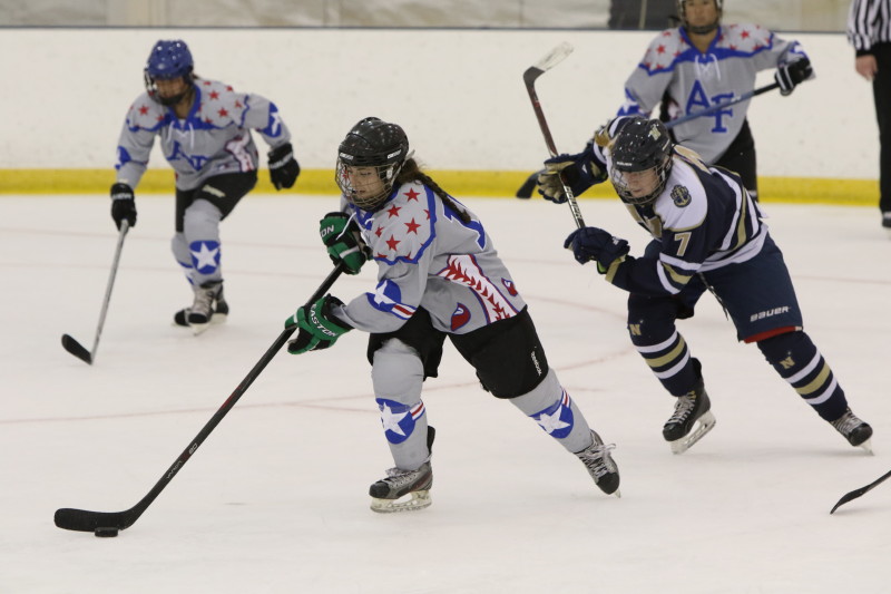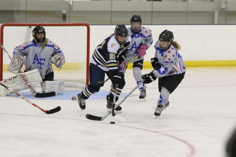 Navy Women Defeat Air Force Women in First Ever Military Academy Hockey Game Posted on October 10, 2019 by Don Haas ANNAPOLIS,Maryland: In the first ever hockey game between military academy women, it was Navy coming out victorious with a 9-0 win. It was the first game of the season for the Air Force women, while Navy had already played four games. Related