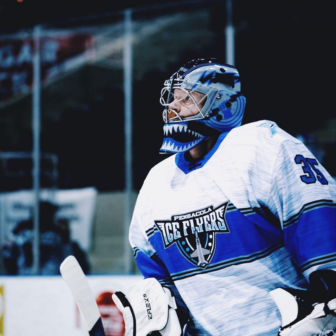 Defenceman Tim Faulkner, #8, has played 28 games with the Ice Flyers in the 2024-25 season after returning from the Macon Mayhem. He has 3 goals and 3 assists, bringing his points-per-game ratio to 0.21. “Being on the beach and playing hockey, it’s the dream, and I’m loving it. When a southern state embraces hockey, it’s really cool to watch. All the guys here are good; we’re just trying to find a way to win hockey games and make it even better.” When asked what advice he’d give to kids dreaming of playing hockey themselves, he offered, “You just have to love the game. As long as you’re loving it, you’re going to go as far as you want to.”