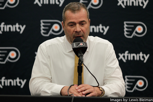 NHL 2021-October 15 VAN vs PHI Published October 18, 2021 at 525 × 350 in NHL 2021-October 15 VAN vs PHI Philadelphia Flyers Head Coach Alaine Vigneault