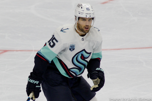 NHL 2021-October 18 SEA vs PHI Published October 18, 2021 at 525 × 350 in NHL 2021-October 18 SEA vs PHI Riley Sheahan #15 of the Seattle Kraken