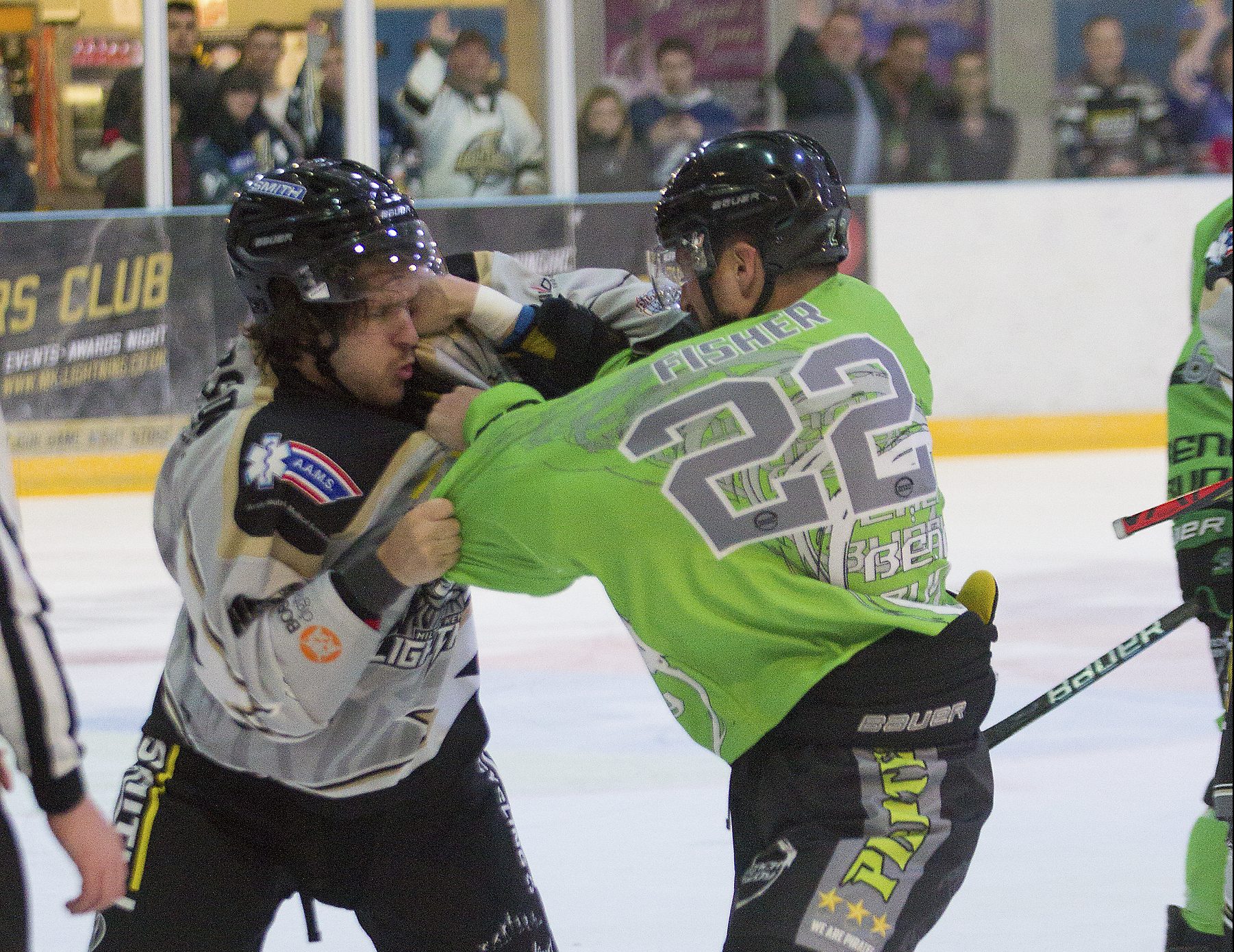 Things boiled over just over halfway through the period and Grant McPherson dropped the gloves with Pirates’ captain, Jordan Fisher.