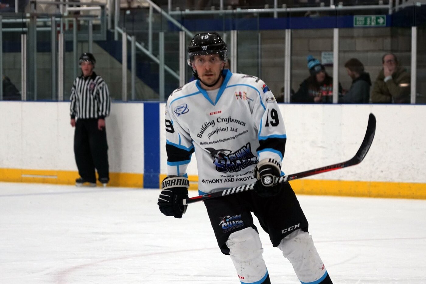 Aaron Davies (4) led the way for Blackburn Hawks as they triumphed 11-0 on home ice against Nottingham Lions in the NIHL Midlands Cup.
