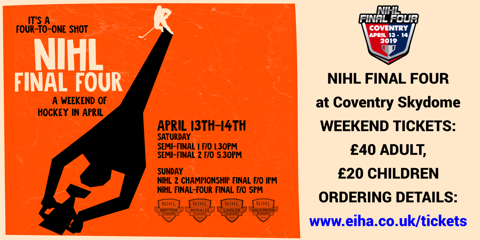 The English Ice Hockey Association has released ticket details for the NIHL Final Four Weekend at Coventry.